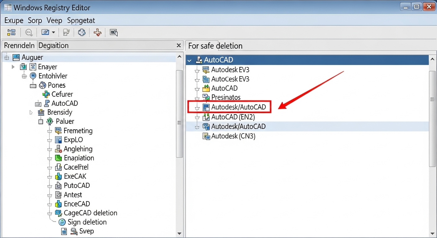 - 주요 레지스트리 경로 탐색 및 삭제: 다음 경로들을 찾아 AutoCAD 또는 Autodesk와 관련된 키(폴더)를 삭제합니다.