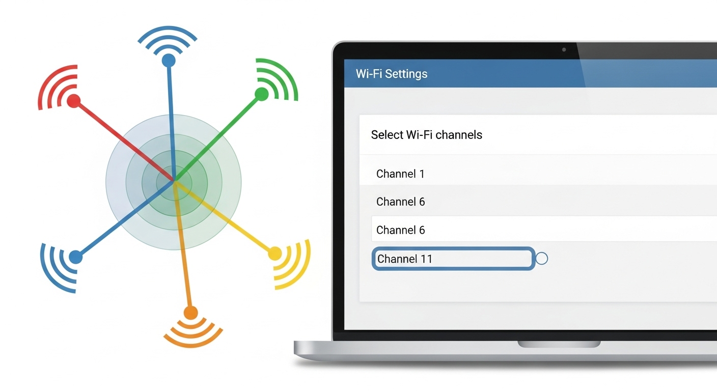 2.4GHz 대역에는 여러 개의 채널이 있는데, 이 중 겹치지 않는 채널(1, 6, 11번이 대표적)을 사용하는 것이 중요합니다. 옆집과 같은 채널을 사용하고 있다면, 마치 같은 도로에 차가 너무 많아 정체되는 것처럼 속도가 느려질 수 있습니다.