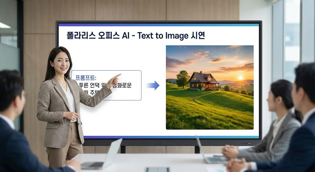 PPT를 만들거나 블로그 글을 쓸 때 적절한 저작권 무료 이미지를 찾느라 시간을 허비한 적 있으시죠? 폴라리스 오피스 AI에서는 원하는 그림을 글로 설명하면 AI가 즉석에서 고퀄리티 이미지를 생성해 줍니다. "미래지향적인 사무실에서 회의하는 모습"이라고 입력하면, 문서에 바로 삽입할 수 있는 이미지가 뚝딱 만들어집니다.