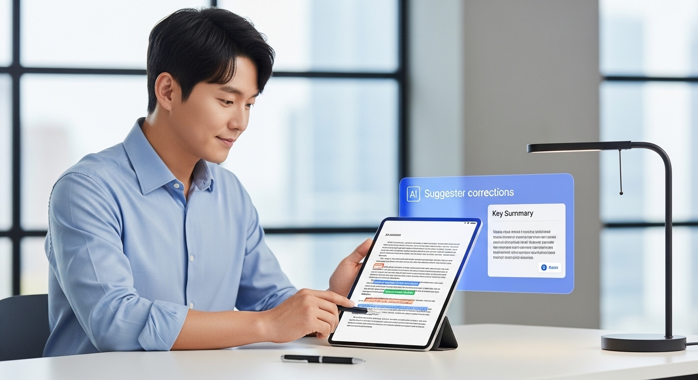 3. 문서 작성 보조: AI 기반 편집기로 초안 작성 및 문장 교정을 받아 문서 완성도를 높이고 시간을 절약하세요.